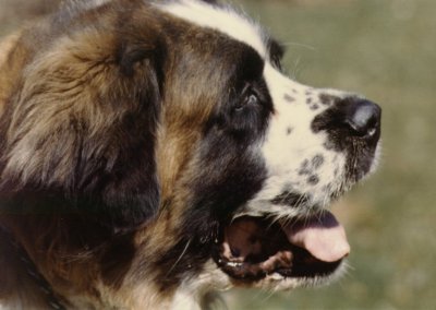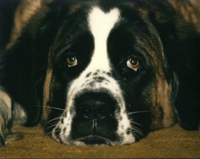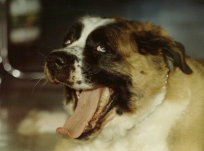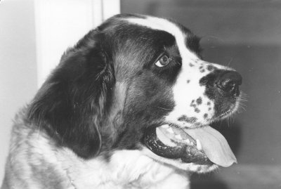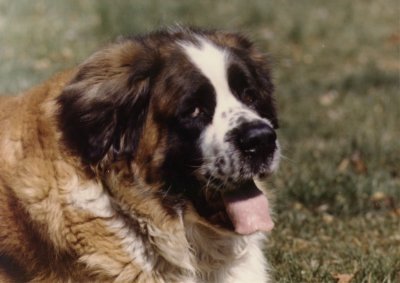 OK, back to Brandy. Brandy weighed in at about 140 pounds when fully grown, and she was a smaller Saint! She had one of the sweetest dispositions of any animal I've ever met, and was so smart sometimes it scared us.