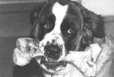 We used to get cow femurs from the butcher for Brandy to have. She was such a good dog that you could take the bone away from her while she was eating it. We figured a dog this size must be trained that well if there were to be kids around. She never harmed anyone or anything.