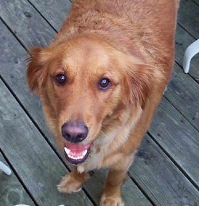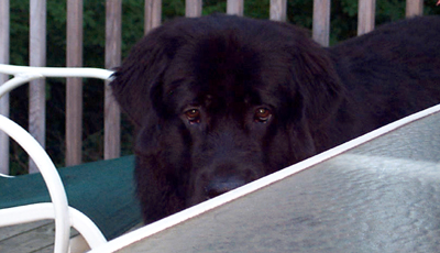 Here's Kirby, looking up at me saying "Please take me home. I'll be good. Don't leave me with these two HUGE dogs. At home I'm the alpha! Please, take me home. Or just give me your hot dog. That would be OK too."