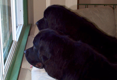 Mommy went to get the mail and both girls were beside themselves not being able to be near her. They watched intently as she walked to the mailbox and back, barking occasionally for effect.
