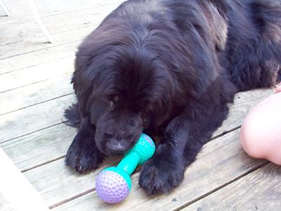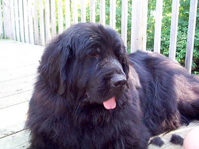 The downfall of the digital camera is that it has a weak flash. It doesn't do very well on Black Newfs in the dark, and sometimes it doesn't do so well in the light either. Even underexposed she beautiful isn't she? Biased? Me? Nah...